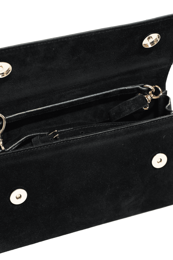 Şık ve zamansız bir görünüm için siyah %100 süet deriden üretilmiş lüks Avenue Çantamızı tanıtıyoruz. Bu çok yönlü çanta, gece dışarı çıkarken el çantası olarak veya çıkarılabilir ve ayarlanabilir omuz askılarıyla şık bir çapraz askılı çanta olarak kullanılabilir. Kapak, mıknatıslı bir aksesuarla güvenli bir şekilde kapatılır ve iç bölmeye kolay erişim sağlar; iç kısımda ise temel eşyalarınız için kullanışlı bir cep bulunur. Her duruma uygun Avenue Çanta ile tarzınızı yükseltin.