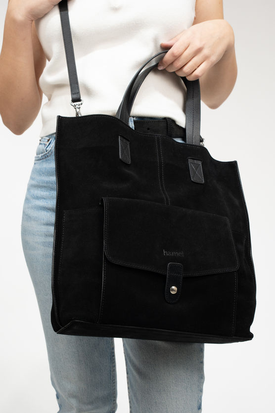 Dayanıklı ve şık bir görünüm için siyah süet %100 hakiki dana derisinden üretilen lüks Goya Çanta ile tanışın. Bu geniş çanta, fermuarlarla uğraşmadan eşyalarınıza kolay erişim sağlayan manyetik ön cebe sahiptir. Ayarlanabilir askıları çıkarılarak elde taşınabilir hale getirilebilir, bu da her duruma uygun çok yönlülük sağlar. İster günlük işlerinizi hallediyor olun ister gece dışarı çıkıyor olun, Goya Çanta her kıyafet için mükemmel bir aksesuardır.